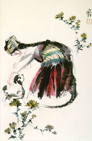 當代中國大陸名畫家程十髮先生,專門畫邊疆少數民族,這幅畫上畫有美麗的少女與可愛的羔羊。我們習慣稱中華民族為五族共和,嚴格地說回族不應列入,因為他們是以宗教信仰而非種族的結合;實際上,中華民族不止五族,尚有其他少數民族散居在中國的雲南、貴州等地。他們的生態,程十髮先生給畫得風味十足。