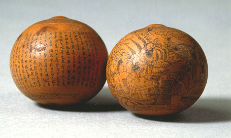 如國文教科書〈核舟記〉所述,雕工極細,人的表情能看得到。核桃中刻有兩篇文章:〈桃花源記〉、〈蘭亭集序〉。此二件為核雕極品。