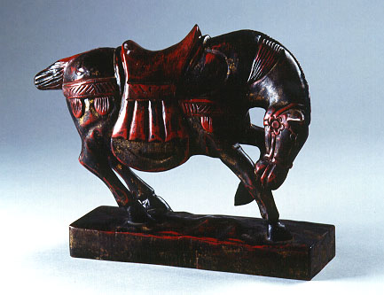 義助慰安婦 —— 李敖百件珍藏義賣藝術品(第43件) 品 名: C12. 木雕戰馬 預估價: 2 萬 成交價: 12 萬 說 明: 唐宋八大家中的韓愈曾說:「一經聖人手,議論安敢道﹖」李敖卻說:「一經李敖手,議論就要道!」。這匹馬的年份雖輕,但雕工卻很好,雄壯威武,是件上品。唐太宗曾命人雕出他生前最心愛的六匹馬於墳前陪葬,可見中國人愛馬的程度。