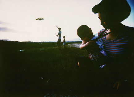 品 名: E5. 梁居正攝影「夢──台北淡水河畔」 預估價: 6 萬 成交價: 6 萬 說 明: 《台灣行腳》這本書是梁居正的攝影集,由黃金鐘主編撰文;這是一本了不起的關於台灣的攝影集。梁居正是外省人,但非常愛台灣,走過台灣大街小巷、荒山僻野,照了好多好的照片,是一個苦幹實幹的攝影家。這幅是他的太太抱兒子在淡水河畔看放風箏的作品;後來他的兒子死了,他把照片沖洗出來,全世界只有一張,給李敖買了下來。從這幅作品可看出他了不起的攝影技術,及人生中所遭遇的喪子之痛。