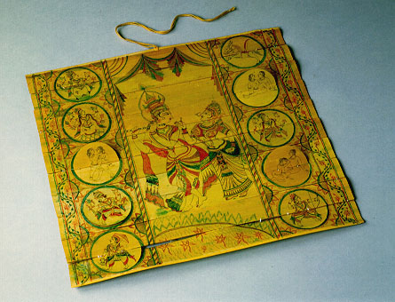 貝葉為古印度、尼泊爾等國宗教文化的產品。這個地方因為不會造紙,所以用貝葉取代紙來書寫。這幅圖上的圓形圖案表面上看是神像,但打開之後卻是一張一張的春宮圖。這是李昂小姐雲遊古國歸來送給李敖的。